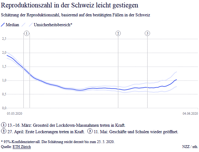 Erstmals seit zwei Monaten ist die Reproduktionszahl in der Schweiz wieder grösser als 1.0