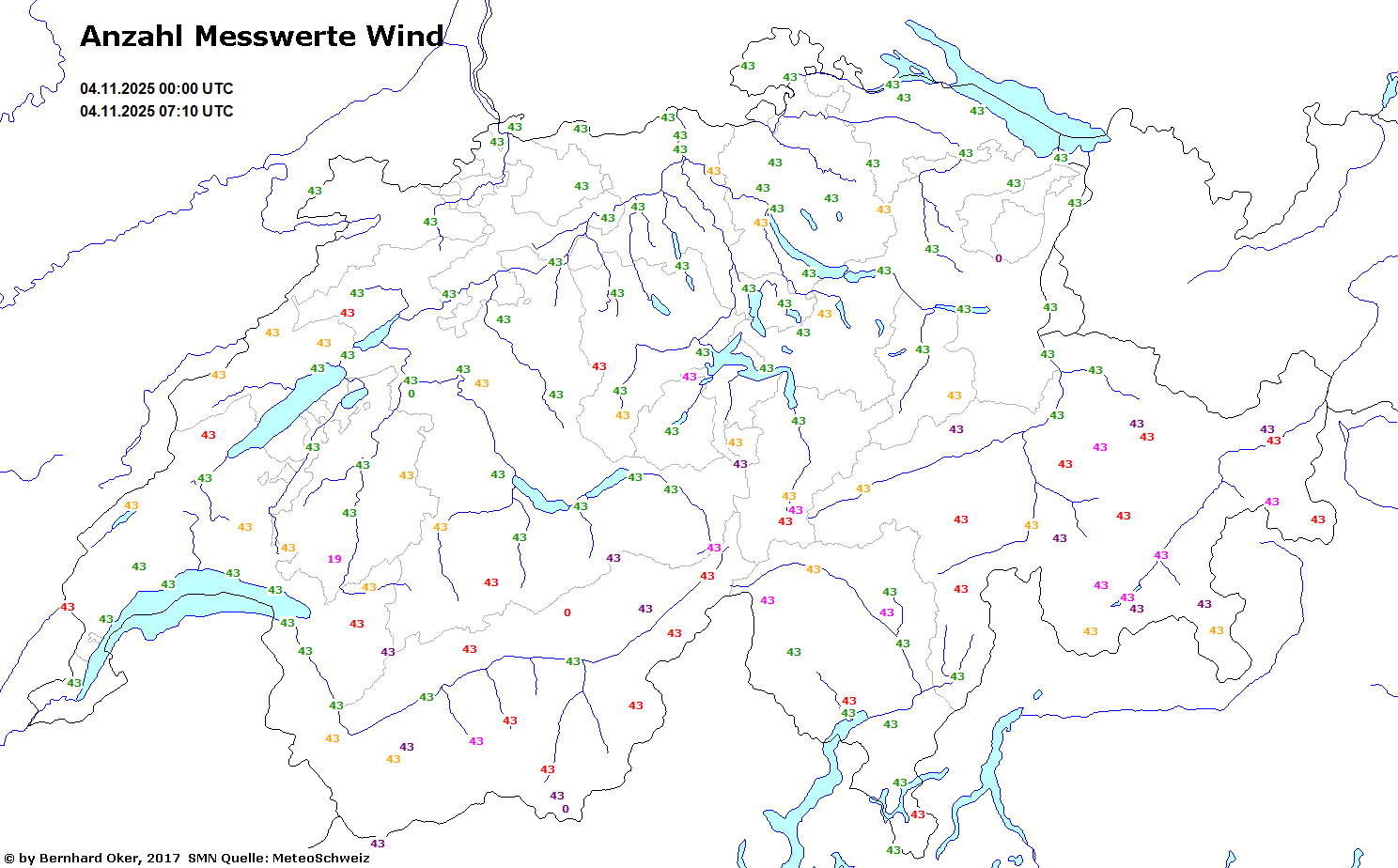 Anzahl Messwerte Wind Mittel