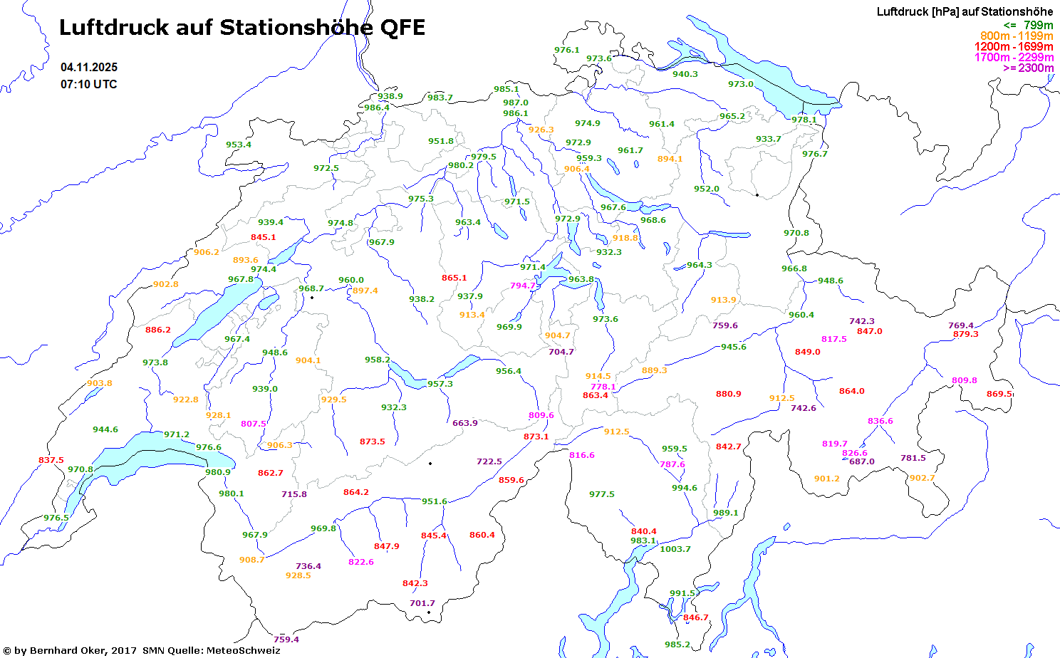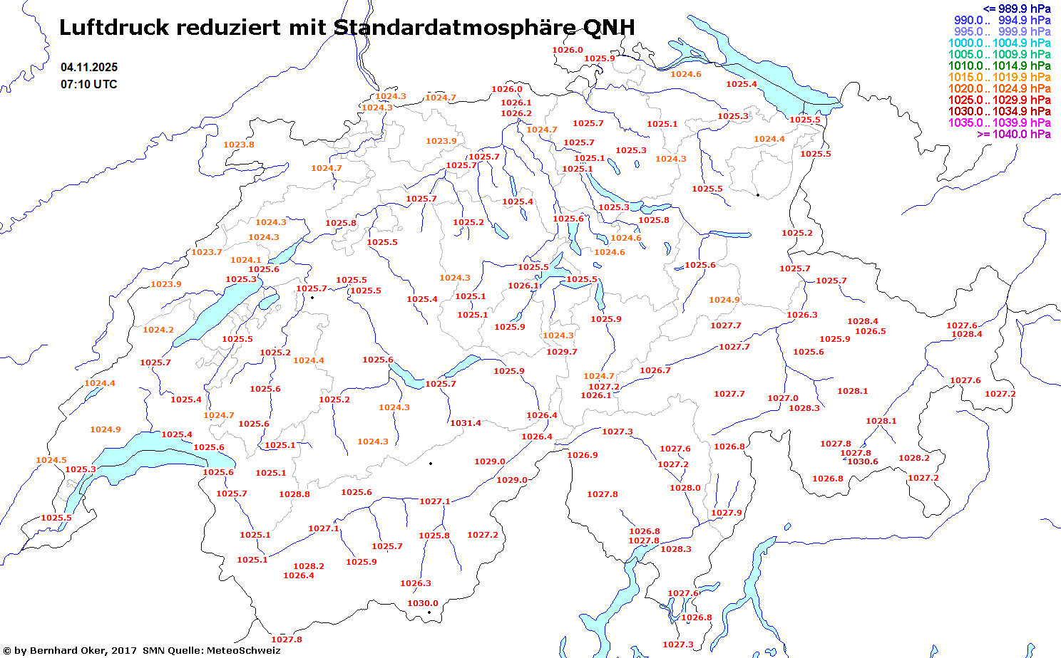Luftdruck QFF (reduziert auf Meereshöhe)